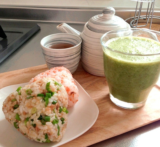 Chiinomamaさんのツナそぼろで朝ごはん おにぎり グリーンスムージー ほうじ茶 サチ Snapdish スナップディッシュ Id 0kmc5a